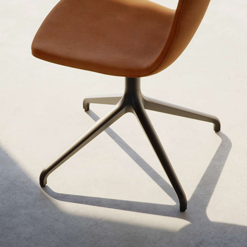 Chair no. One is een eetkamerstoel met een compromisloos ontwerp gemaakt van zorgvuldig geselecteerde materialen met een focus op duurzaamheid en kwaliteit. Het frame is gemaakt van recyclebaar aluminium, terwijl de zitting is gemaakt van gerecycled plastic en bekleed met SPOOR leer van de hoogste kwaliteit.