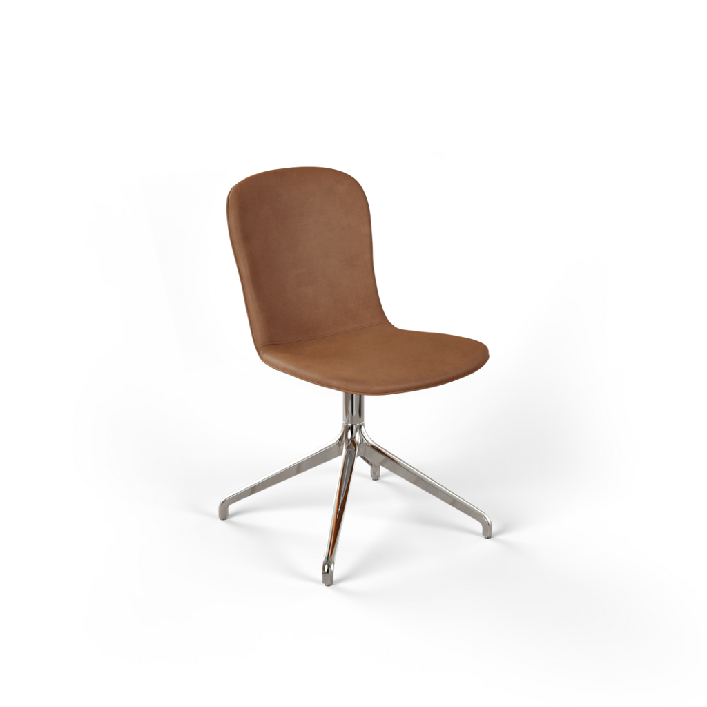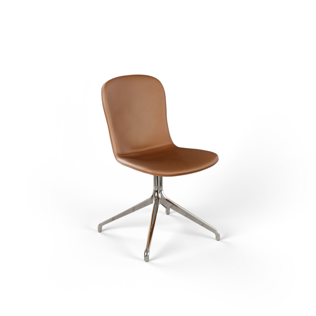 Chair no. One S1 is de pure en eenvoudige uitvoering van Chair no. One. Een eetkamerstoel met een samenhangende vormtaal, waarbij comfort, materialen en verantwoorde keuzes vanaf het begin zijn meegenomen. De gevormde schaal van gerecycled kunststof is bekleed met Noord-Europees, traceerbaar leer van SPOOR en biedt comfortabel en ondersteunend zitcomfort voor dagelijks gebruik aan de eettafel.