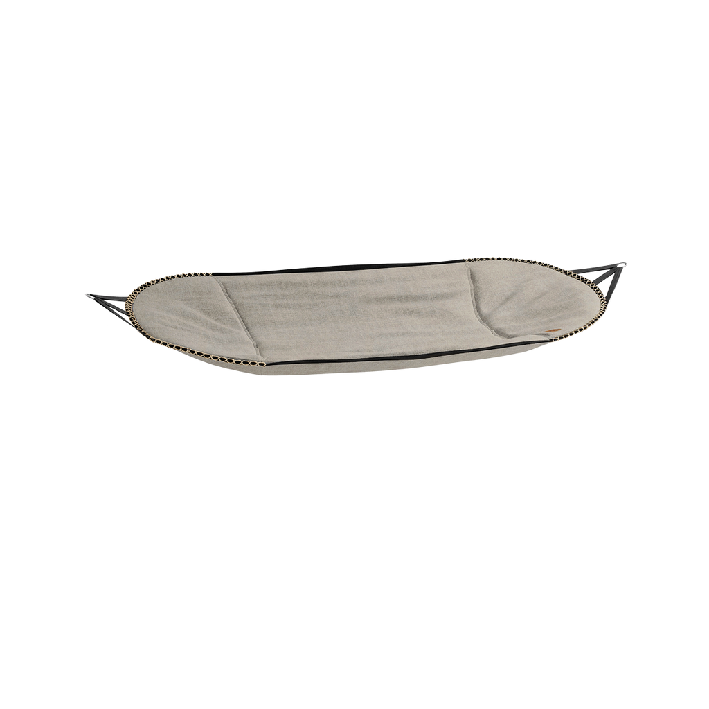 De Cobana hangmat geeft een doordacht Deens design. In de hangmat zijn twee ergonomisch gevormde metalen staven genaaid, wat ervoor zorgt dat de hangmat niet zijn vorm verliest als u erin ploft. Langs de randen zijn mooie handgenaaide linnen naden, die het ontwerp een mooi afgewerkte rand geven en een fijn detail toevoegen
