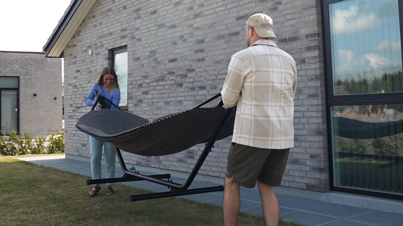 Het aluminium frame is gemaakt van kwaliteitsbewust en stabiel aluminium. U kunt de hangmat staander veilig buiten laten staan , ook als slecht weer is aangekondigd. We raden u echter wel aan om uw hangmat mee naar binnen te nemen bij harde wind en storm. Met Cobana Hammock is het eenvoudig om de hangmat naar de gewenste plek te verplaatsen. Vang de zonnestralen op of kom tot rust in de schaduw, wat er ook gebeurt, er is een garantie voor ontspanning, precies waar u maar wilt.