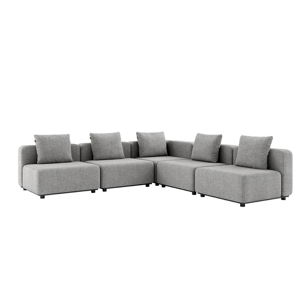 De lichte modules maken het eenvoudig om de opstelling te veranderen wanneer de behoefte wijzigt, zonder in te leveren op stabiliteit of comfort. De constructie is opgebouwd rond een gepoedercoat aluminium frame en duurzame materialen die geschikt zijn voor buitengebruik het hele jaar door. Het textiel is water- en vuilafstotend, sneldrogend en UV-bestendig, waardoor de sofa zijn vorm, functie en kleur behoudt.