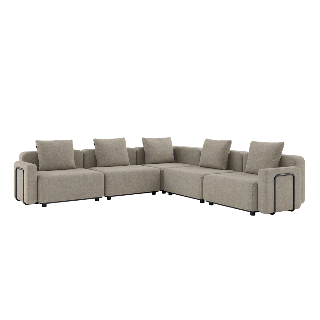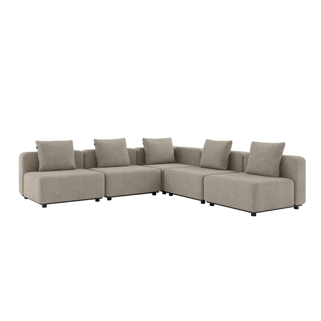 Cobana Lounge Sofa is een modulaire outdoor sofa met een rustige, volwassen uitstraling en strakke Scandinavische lijnen. Ontworpen in Denemarken met focus op duurzaamheid, functionaliteit en een vormentaal die natuurlijk past in zowel privétuinen, terrassen als grotere buitenruimtes. De sofa kan vrij worden samengesteld en aangepast aan de ruimte, zowel als klassieke loungeopstelling als onderdeel van een outdoor lounge dining-opstelling.