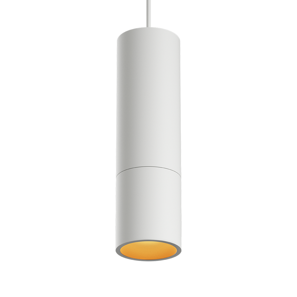 De lichtbron is teruggeplaatst in de kap voor gecontroleerd en verblindingsvrij licht. De goudkleurige binnenzijde reflecteert het licht naar beneden en voegt warmte toe zonder onnodige verspreiding in de ruimte. De eenvoudige ophanging benadrukt de proporties en maakt de lamp geschikt voor zowel woon- als projectomgevingen waar herhaling en precisie belangrijk zijn.