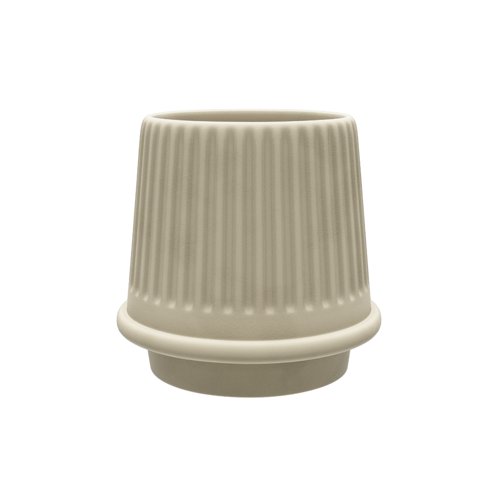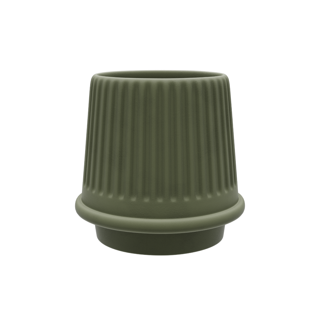 Gaia 16 is een vorstbestendige buitenpot met een matte, geribbelde afwerking. Het ontwerp is geïnspireerd op de esthetiek van het oude Griekenland – Gaia is de Griekse godin van de aarde en vruchtbaarheid.