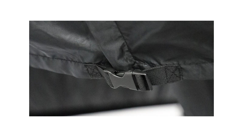 De hoes is gemaakt van waterafstotend, rekbare materialen die gemakkelijk aan en uit te trekken zijn. Aan de bovenkant van de hoes zit een stevig elastiek dat ervoor zorgt dat het water niet op de hangmat blijft liggen, maar naar beneden loopt.