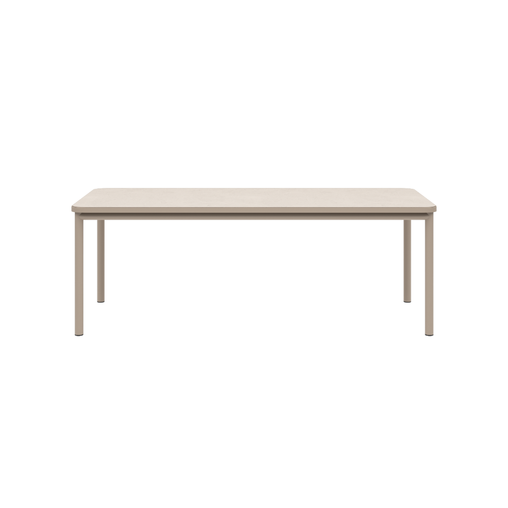 Kirra Dining Table er et utendørs spisebord laget av pulverlakkert aluminium og en keramisk bordplate. Aluminiumet gjør bordet lett og rustfritt, mens den keramiske bordplaten tilfører varme og et naturlig preg.