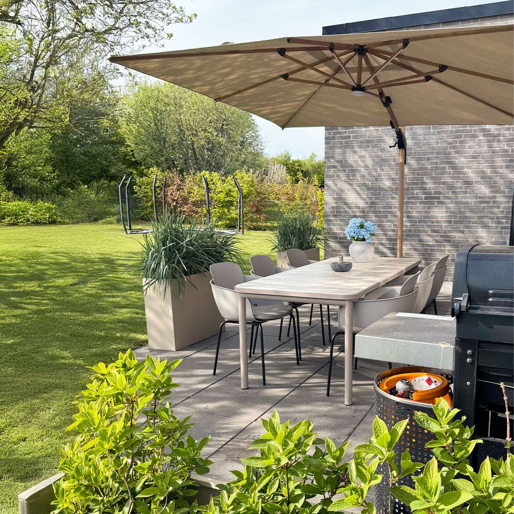 Elegante en weerbestendige outdoor eettafel met keramisch tafelblad