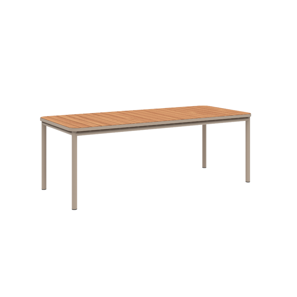De Kirra Dining Table is een outdoor eettafel van gepoedercoat aluminium en FSC®-gecertificeerd teakhout (FSC® C190311). Het lichte aluminium roest niet, terwijl het teakhout warmte en een natuurlijk patina toevoegt.
