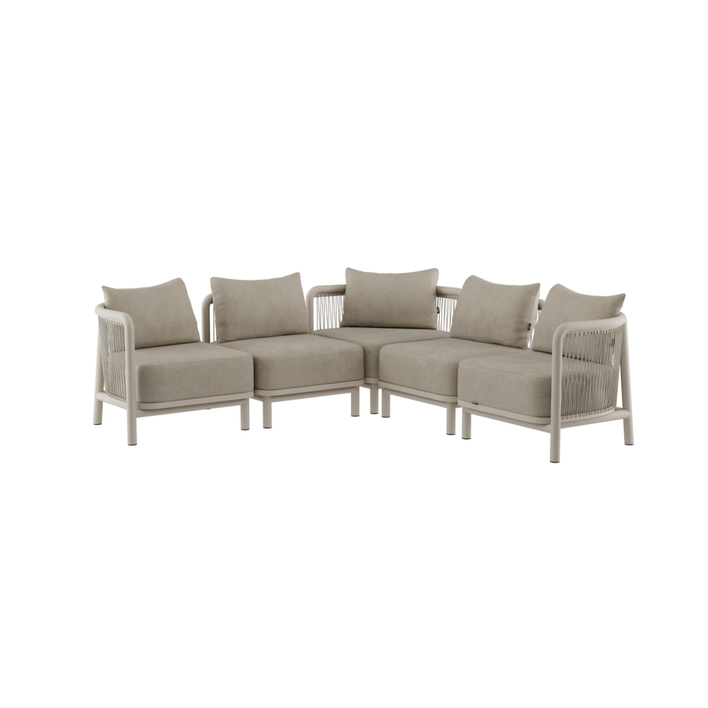 De Kirra Lounge Sofa creëert de perfecte buitenruimte die ongetwijfeld het middelpunt wordt van gezellige momenten onder de blote hemel met vrienden en familie. Dankzij het modulaire ontwerp kun je de sofa aanpassen aan je buitenruimte en -behoeften.