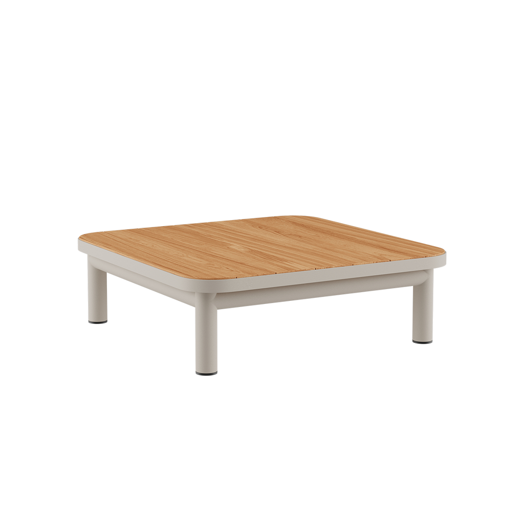 De Kirra Coffee Table is een outdoor salontafel van gepoedercoat aluminium met een elegant teakhouten tafelblad. Als onderdeel van de Kirra Lounge serie is deze salontafel ontworpen om perfect te combineren met de Kirra Lounge Sofa en Chair. Met zijn duurzame constructie en esthetische uitstraling is de Kirra salontafel een mooie en praktische toevoeging aan elke buitenoase.