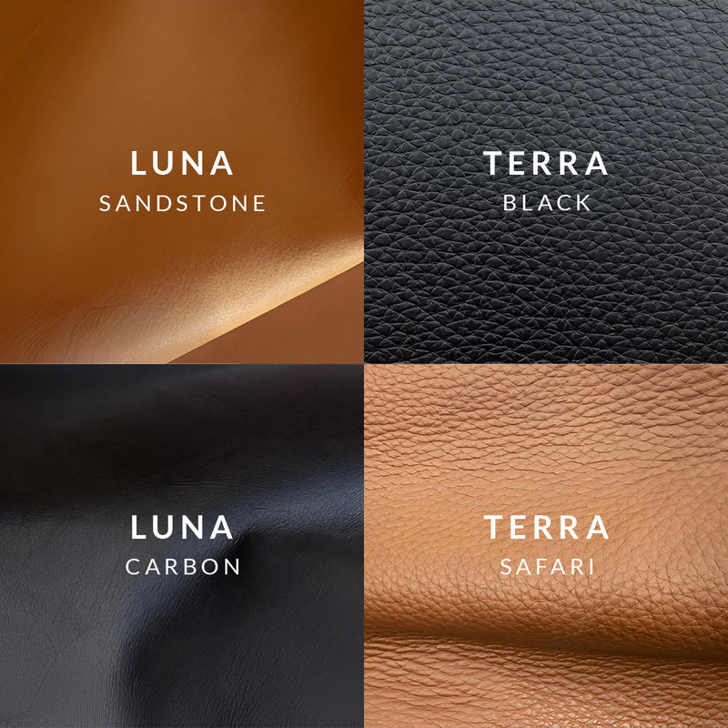 Het Luna leer is uniek, en krijgt na verloop van tijd een gepatineerd uiterlijk, en voelt zeer zacht aan. Terra is zeer uniform in het leer, en gemakkelijk te onderhouden.