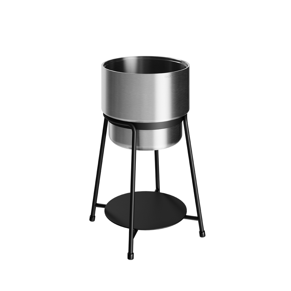 De Patio Accessory Stand is een buitenstandaard van gepoedercoat roestvrij staal die perfect past bij onze serie buitenproducten. De standaard heeft een eenvoudig ontwerp en functioneert als een uitbreiding voor zowel SACKit lampen en onze wijn emmer, die allemaal in de standaard kunnen worden geplaatst.