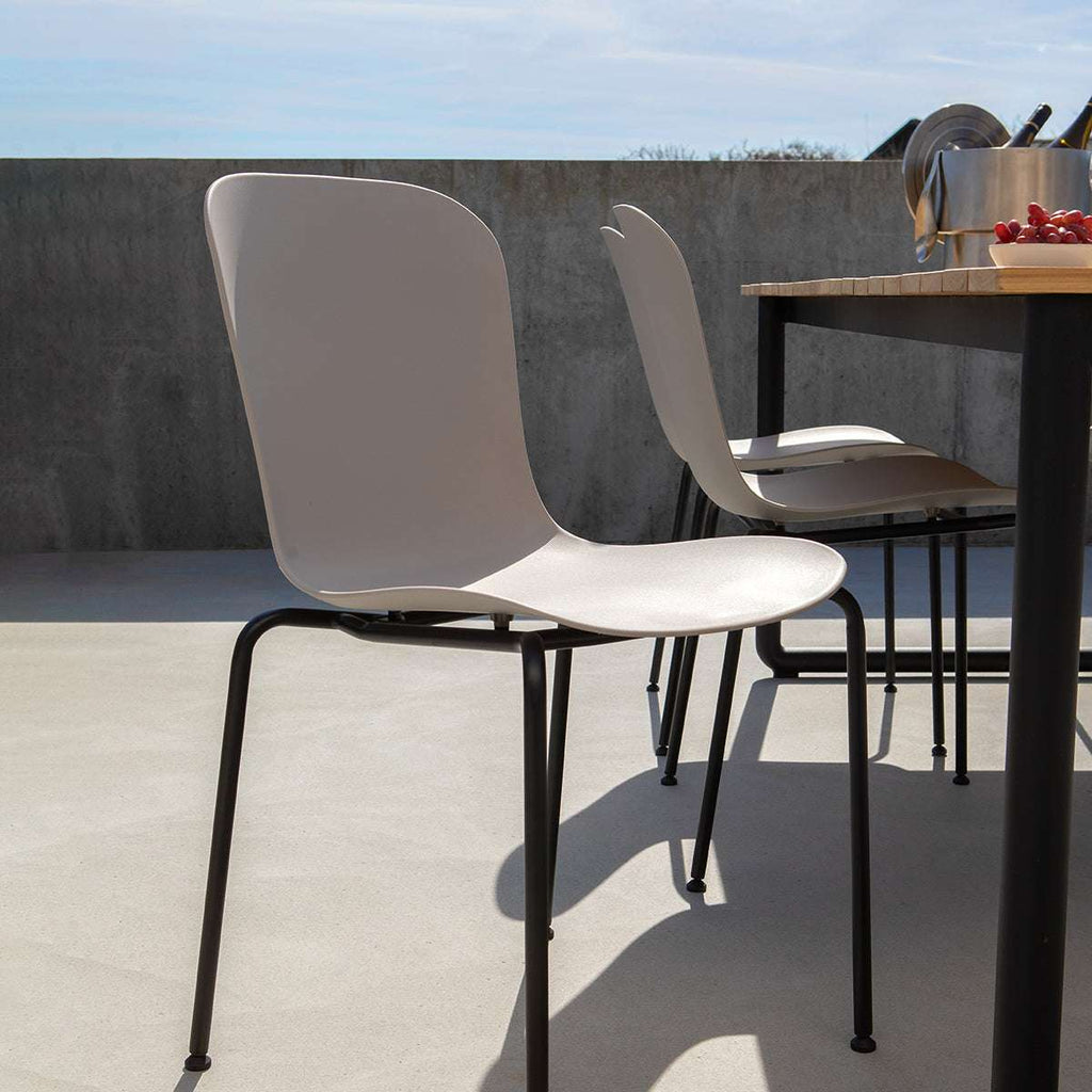 De stoel is verkrijgbaar in meerdere kleuren, zowel voor de schaal als het frame, waardoor hij eenvoudig kan worden afgestemd op verschillende omgevingen en architectuur. Het ontwerp is licht en praktisch in gebruik. De stoel is stapelbaar, bestand tegen zon en weer en eenvoudig te verplaatsen wanneer de buitenruimte verandert. Een duidelijke keuze voor terras, balkon of tuin, gemaakt om keer op keer te worden gebruikt.