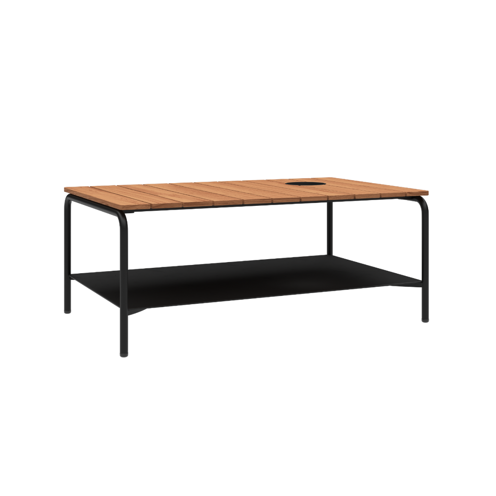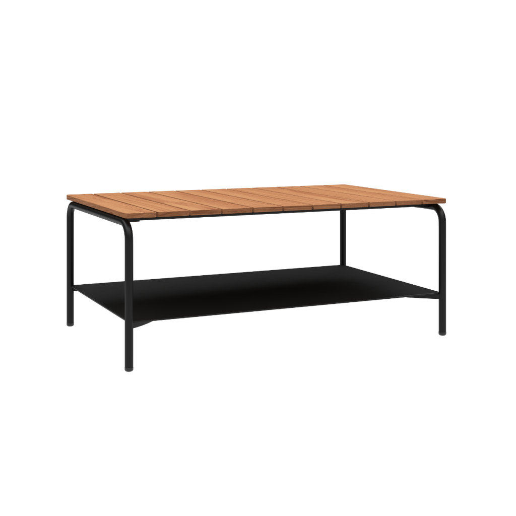 De Patio Coffee Table is een mooie en functionele outdoor salontafel van gepoedercoat aluminium met een tafelblad van FSC®-gecertificeerd teakhout (FSC® C190311). Het lichte aluminium roest niet, terwijl teakhout warmte en karakter toevoegt. Na verloop van tijd zorgt het patina voor nog meer uitstraling. De tafel is ideaal als aanvulling op onze outdoor collectie, en perfect geschikt voor gezellige momenten met vrienden of familie.